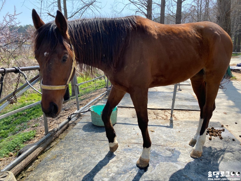 세 번째 승마마 제우스: 제우스는 반동이 조금 크고 겁이 많다. 뒤에 말이 붙는 게 싫어서 뒷발차기를 한다. 제우스도 자꾸 고삐를 당겨 빼앗으려 했다.고삐를 뺏으면 화를 내도 된다고 해서 고삐를 당길 때마다 “에이~야!” 소리를 낸다.이렇게 소리만 내고 혼내도 무서워하고 무서워한다.하마방마에서 내릴 때는 왼손에 고삐와 말머리털을 함께 잡고 일어선다.오른발을 천천히 왼쪽으로 보내며 안장에 배를 두르고 업는다.그리고 천천히 미끄러지듯 내려온다.