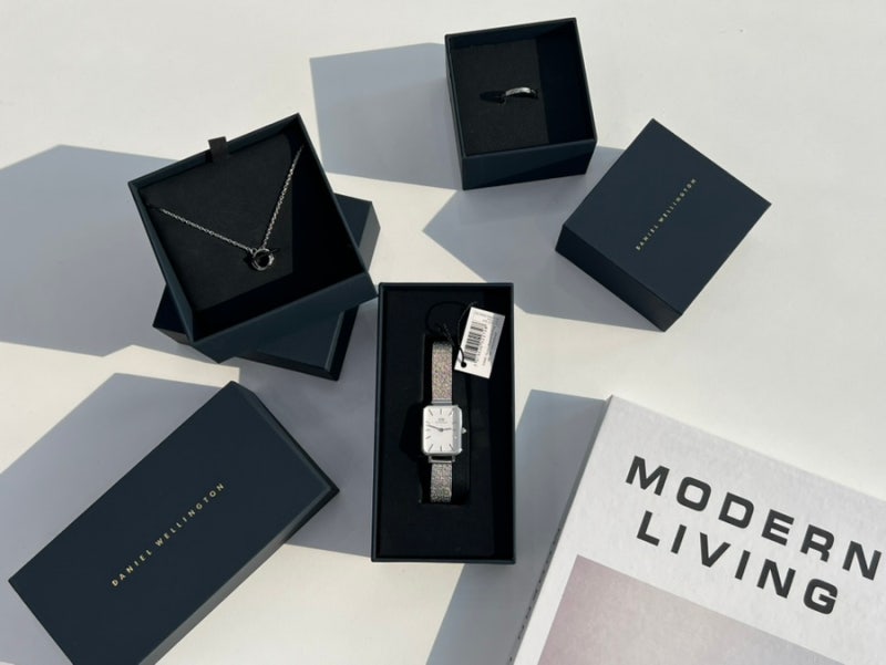 함께 착용하면 귀여움이 배가 되는 팔찌까지 여자친구 선물로 주면 받는 사람은 얼마나 좋아할까요! 지금 또 발렌타인 시즌이라 세트 상품 20% 할인에 다니엘 웰링턴 15% 할인 코드까지 더하면 가성비 좋은 상품을 만나보실 수 있습니다. 제가 보여드리는 제품만 해도 단품 구매시 40만원 조금 넘는 가격인데 지금 구매하시면 20만원대로 뚝 떨어집니다.5 – 링크의 멜로 드링크소장하고 있는 다니엘 웰링턴 시계만 해도 몇 개! 심플하면서도 미니멀한 감성과 달리 조금씩 모으기 시작한 지 벌써 몇 년이 지났습니다. 이번에 데려온 모델은 작지만 어떤 각도에서도 반짝반짝 존재감이 꽤 있는 마더 오브 펄 다이얼 여성 메탈 시계입니다. 작년에는 실버 메탈 시계를 선택해 보았습니다만, 이번에는 로즈 골드를 선택해 본 것이군요.골드 도금된 빛나는 팔찌와 화이트톤 자개로 제작된 다이얼은 제품에 세련된 광채를 더했으며 숫자 대신 새겨진 고급 크리스탈은 제품의 퀄리티를 더욱 높였습니다. 12시 방향 하단에 새겨진 DW 로고도 예쁘고 다이얼 사이즈가 가로 2cm 세로 2.6cm로 너무 작아서 가볍고 미니멀한 여성 메탈 시계를 찾으시는 분들께 추천드려요!골드 도금된 빛나는 팔찌와 화이트톤 자개로 제작된 다이얼은 제품에 세련된 광채를 더했으며 숫자 대신 새겨진 고급 크리스탈은 제품의 퀄리티를 더욱 높였습니다. 12시 방향 하단에 새겨진 DW 로고도 예쁘고 다이얼 사이즈가 가로 2cm 세로 2.6cm로 너무 작아서 가볍고 미니멀한 여성 메탈 시계를 찾으시는 분들께 추천드려요!클래식 팔찌다니엘 웰링턴 베스트셀러 클래식 팔찌도 데려왔어요. 로즈 골드톤으로 위에서 보여드린 여자 메탈 시계와 세트로 착용하시면 깔끔함이 배가 됩니다! 캐주얼하면서도 유행에 휩쓸리지 않는 세련된 디자인의 팔찌여서 지금 계절부터 소매가 짧아지는 여름까지 아주 착용하기 좋을 것 같아요.다니엘 웰링턴 시계는 정말 다양하잖아요. 오늘 보여드린 쿼드로루미네 5링크는 착용하기 전에 전용 툴로 스트랩 길이를 줄이거나 늘려야 합니다. 제 손목 둘레가 14cm 정도이기 때문에 저는 도구로 스트랩 둘레를 줄였습니다. 팔찌의 경우 S, L의 2종류의 사이즈가 있어서 원래 S를 선택했습니다.저처럼 도구가 있으면 집에서 쉽게 조절할 수 있지만 시계방으로 가져가서 해결하셔도 돼요. 더블 플레이티드 스테인리스 스틸 소재로 저렴하고 튼튼하며, 1cm 두께의 슬림한 스트랩은 얇은 여성 손목에도 잘 어울립니다.이런 메탈 소재의 워치는 격식 있는 복장에만 어울리지 않을까 생각했는데 의외로 단가라 티셔츠 같은 캐주얼한 복장에도 잘 어울립니다. 군더더기 없이 깔끔한 스타일이라 어느옷에 코디하셔도 굿!다이얼 사이즈가 미니멀하지만 다이얼판 자개 소재인 데다 숫자 대신 크리스탈 보석이 새겨져 있어 멀리서도 상당한 존재감을 자랑합니다. 전체적인 느낌을 확인해주세요.여성 메탈 시계와 팔찌를 똑같이 로즈 골드 톤으로 맞춰주니까 정말 세트처럼 잘 어울리네요. 모두 스트랩이 얇아 착용한 듯 안입은 듯 가벼운 것도 쿼드로 모델의 큰 장점이었습니다. 무게가 가벼워서 레이어드해서 착용하셔도 전혀 부담스럽지 않더라구요.밸런타인데이에 여자친구 선물로 다니엘 웰링턴 세트를 구매하시는 분들을 위해 구매하는 방법을 간단히 소개해 보겠습니다. 지금 빈홈에서 구매하시면 세트 기준 20% 할인 구매 가능하십니다.여기에 제가 알려드리는 다니엘 웰링턴 할인코드 dwrrss를 입력하시면 추가 15% 할인까지 받으실 수 있습니다. 할인된 금액만 10만원이 넘으니 놓치면 정말 아쉬운 혜택일 것 같아요. 시계 선물은 좋은 의미가 담겨있는 만큼 그녀의 선물을 고민하시는 남성분들은 이번 기회에 저렴하게 받아보세요.방수등급 3ATM으로 생활방수도 가능한데요. 착용한 상태에서 손을 씻거나 설거지를 해도 문제 없어요. 지금 가장 저렴하게 구입할 수 있는 공식 몰 링크 아래 남겨두겠습니다.발렌타인 데이 – 남성과 여성 모두를 위한 발렌타인 데이 선물 | DW 다니엘 웰링턴에서 발렌타인 데이를 기념하세요. 공식 홈페이지에서 남성과 여성 모두에게 선물을 구입할 수 있습니다. 시계, 보석의 완벽한 발렌타인 선물을 지금 바로 보세요.www.danielwellington.com본 투고는 다니엘 웰링턴으로부터 제품과 소정의 원고료를 받고 솔직하게 작성한 리뷰입니다.