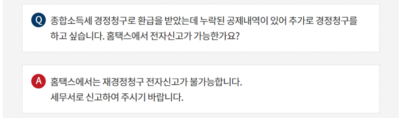 청구서를 작성해 제출하고 이미 환급까지 받은 상태라면 같은 해 소득신고 내용에 대한 경정청구 추가 신청은 다시 진행할 수 없다.이처럼 추가 누락에 대한 내용을 반영해 재신청해야 할 경우 주소지 관할 세무서에 직접 방문해 신청이 가능하다.[함께 보면 도움이 되는 문장]